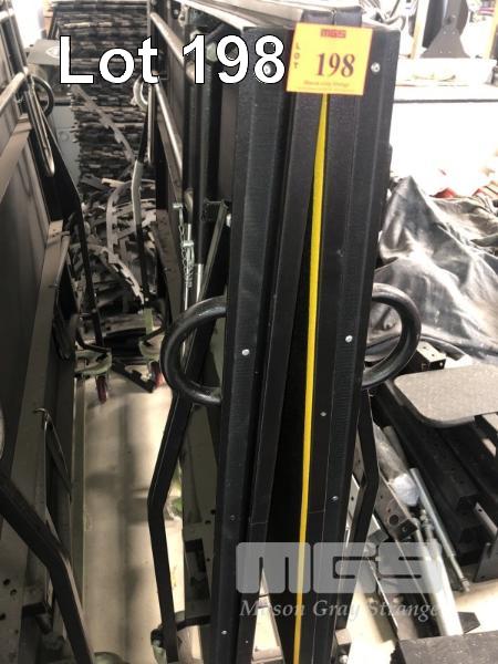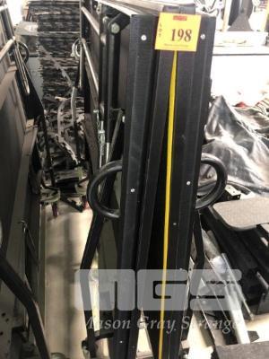MOBILE FOLD OUT STAGE 2400mm x 1800mm CARPET TOP, CASTOR WHEELS WITH BRAKES