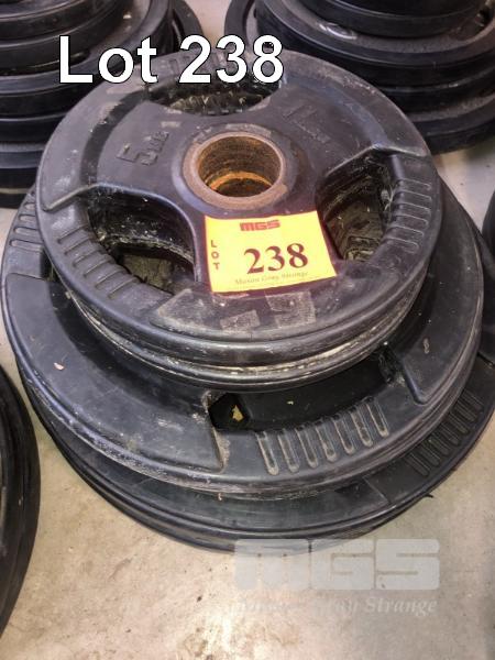 6 x WEIGHTS, PAIRS OF 5kg, 10kg, 20kg