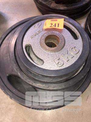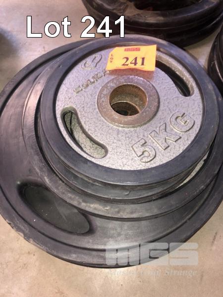 6 x WEIGHTS, PAIRS OF 5kg, 10kg, 20kg