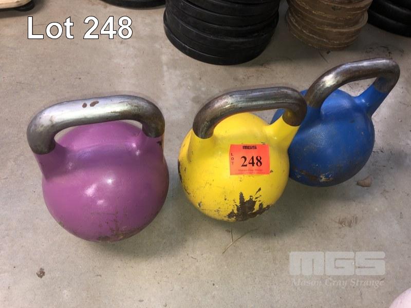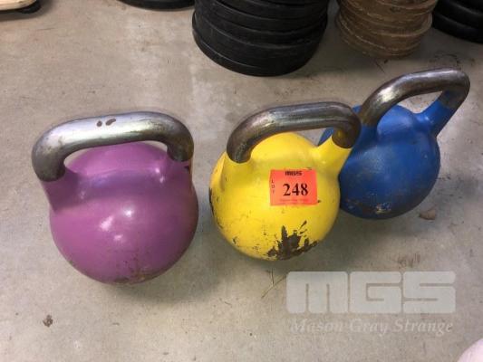 3 x KETTLE BELLS, 12kg, 16kg, 20kg