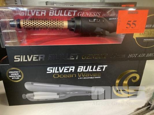 1 x SILVER BULLET OCEAN WAVES 4 IN 1 ADJUSTABLE WAVER & 1 x SILVER BULLET GENESIS 19mm HOT AIR BRUSH