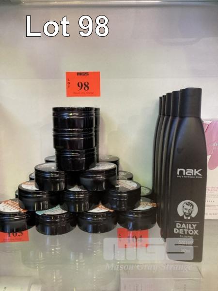 24 x ASSORTED NAK MENS HAIR PRODUCT WAX/GEL W/ 4 x BOTTLES NAK DAILY DETOX SHAMPOO