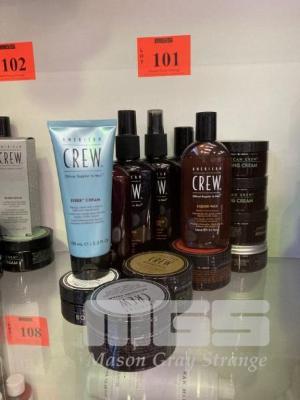 15 (APPROX) x ASSORTED AMERICAN CREW HAIR/BEARD PRODUCTS INCL LIQUID WAX, ALTERNATOE & FIBER GROOMING FOAM