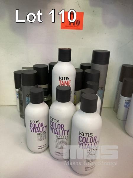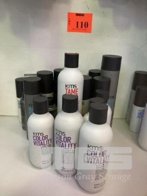 20 (APPROX) x BOTTLES ASSORTED KMS HAIR PRODUCTS INCLUDING COLOR VITALITY, ADDS VOLUME SHAMPOO, THERMA SHAPE, MOIST REPAIR GEL & HAIR STAY