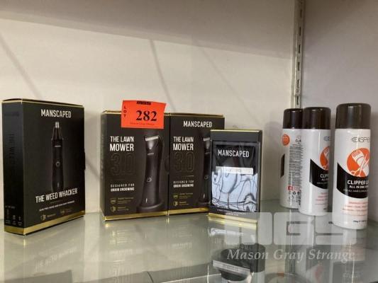 2 x HAIR & 1 x NOSE & HAIR TRIMMER, MANSCAPED GROOMING KIT & 3 x CANS ALL IN ONE SPRAY