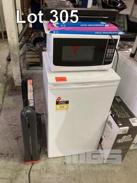 WESTINGHOUSE BAR FRIDGE, MICROWAVE OVEN, LAMINATOR & STEP LADDER