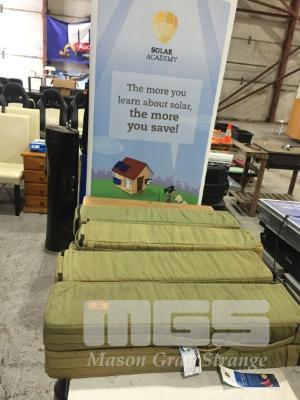 9 x ASSORTED POP UP PROMOTIONAL BANNERS, TIMBER FRAME