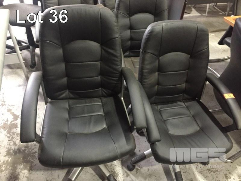 7 X MATCHING OFFICE ARM CHAIRS, BLACK VINYL.