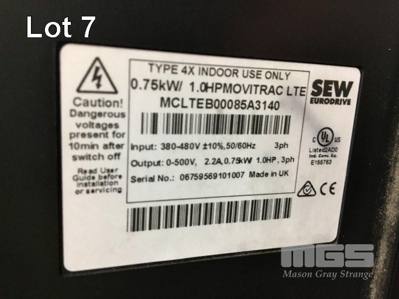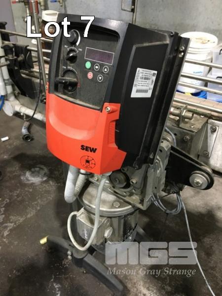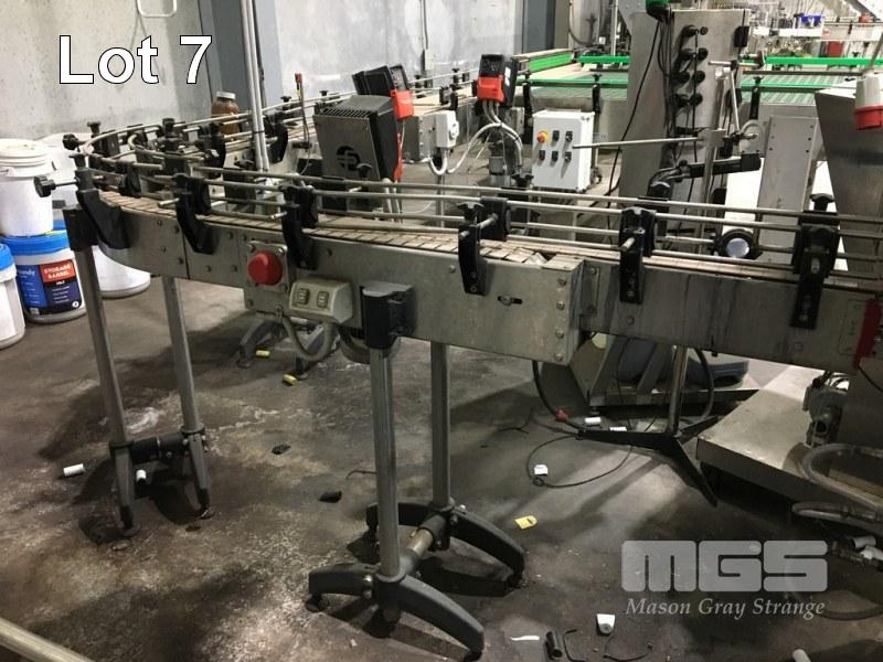 CONVEYOR TRANSFER SECTION SINGLE TRACK, BEND APPROX. 3700mm (L) WITH 2 x SEW VARIABLE DRIVES TYPE: 4X, 415V (NOTE: TO BE SEPARATED AT RED MARKINGS & BUYER TO GET ELECTRICAL DISCONNECTIONS)
