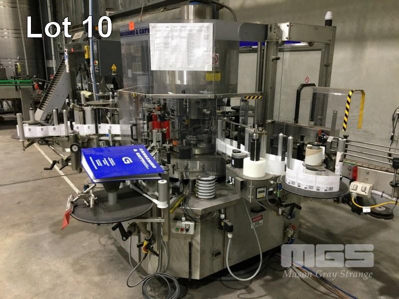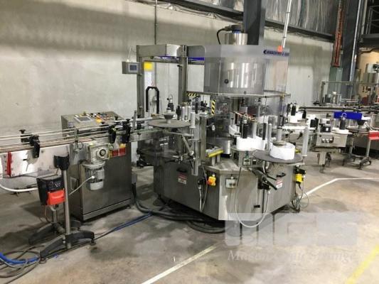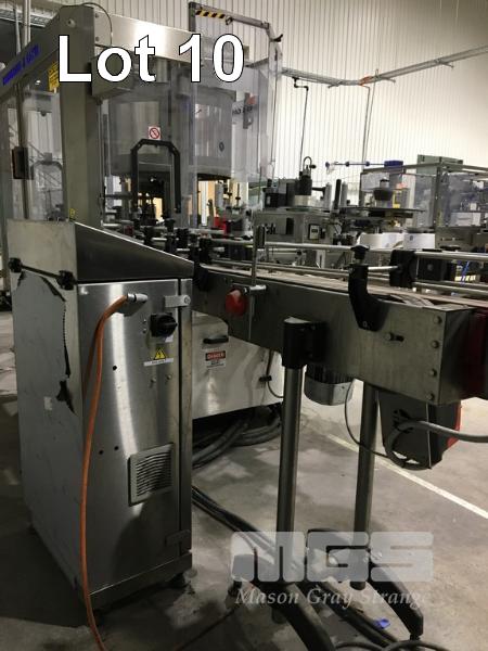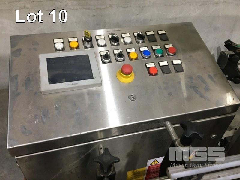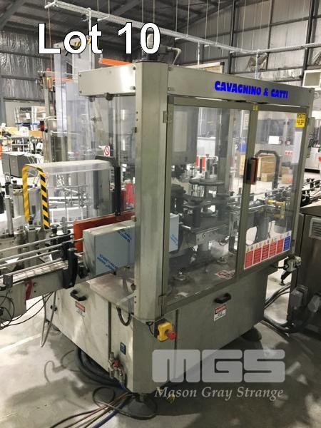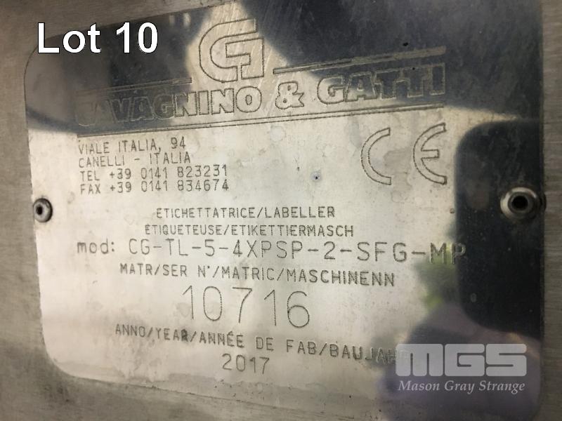 ROTARY LABELLER, CAVAGNINO & GATTI MOD: CG-TL-5-4X PSP-2-SFG-MP SERIAL: 10716 DOM: 2017 PRO FACE CONTROLLERS STAINLESS STEEL CASED, 5 HEAD WITH IN FEED CONVEYOR, SINGLE TRACK, 1000mm (L) SEW VARIABLE SPEED, DRIVE TYPE: 4X (NOTE: TO BE SEPARATED AT RED MARKINGS & BUYER TO GET ELECTRICAL DISCONNECTIONS)