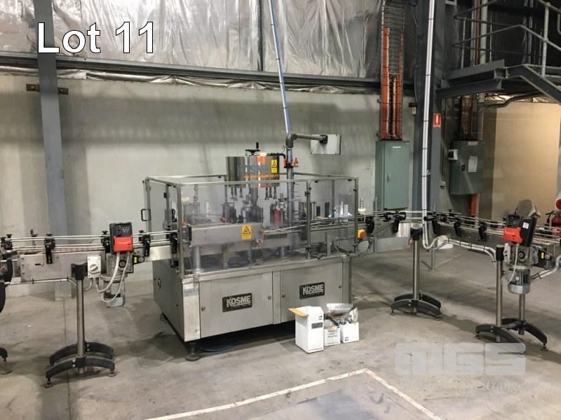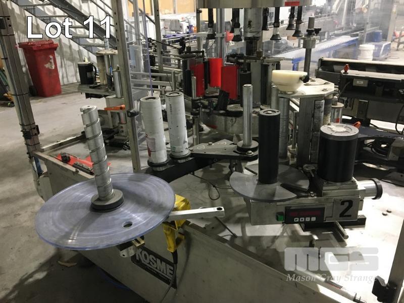 LABELLING MACHINE, KOSME 2 STATION MOD: KOSMAC ADHESIVE TYPE: BTS2E2 S/NO: 2507 DOM: 1998 WITH OUTFEED 6000mm (L) & INFEED CONVEYOR S BEND SECTION SINGLE TRACK TO TWIN TRACK OFF SHOOT 3000mm (L) 23 x SEW VARIABLE SPEED DRIVES, TYPE: 4X, 415V