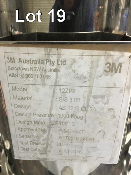 3M FILTRATION UNIT, MOD: 12ZP2 DOM: 2016 STAINLESS STEEL 1000 KPAG PRESSURE MOBILE WITH VALVE MANIFOLD