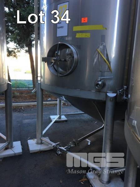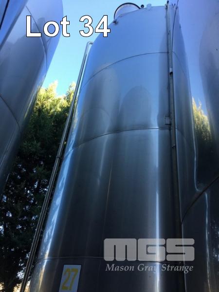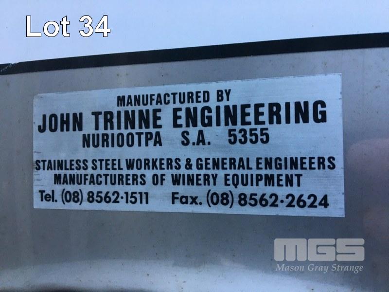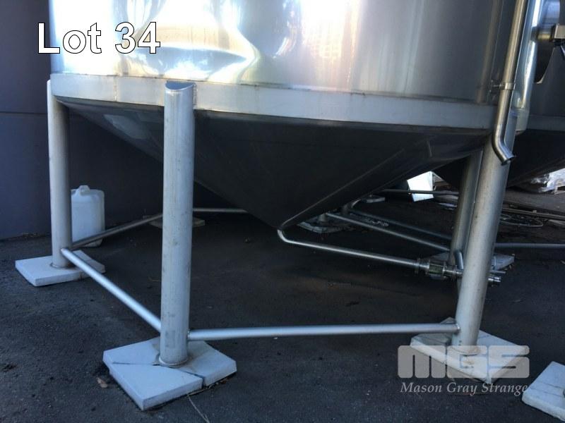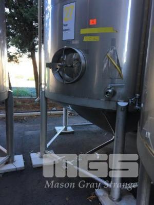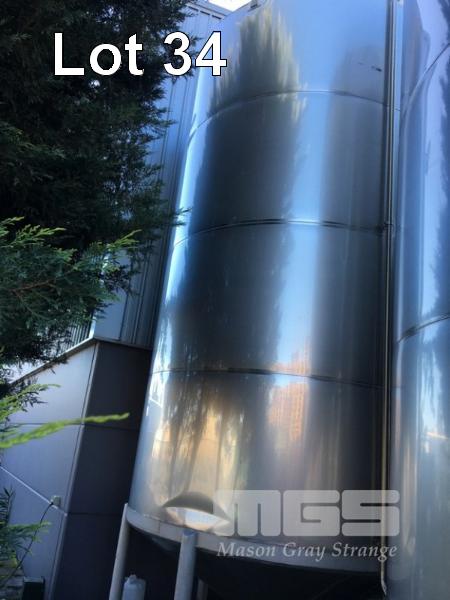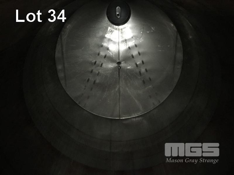 JOHN TRINNE ENGINEERING TANK, 30,000 LITRES CAP (APPROX) S/NO: 697 STAINLESS STEEL, CONE BASE FITTED WITH BOTTOM, TOP & SIDE INLET/OUTLET VALVES, SIDE MOUNT LEVEL VIEWING TUBE, SIDE INSPECTION HATCH & LIFTING LUGS