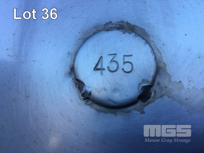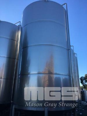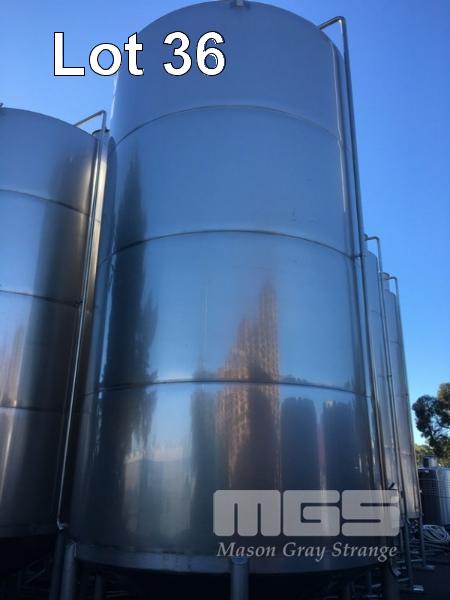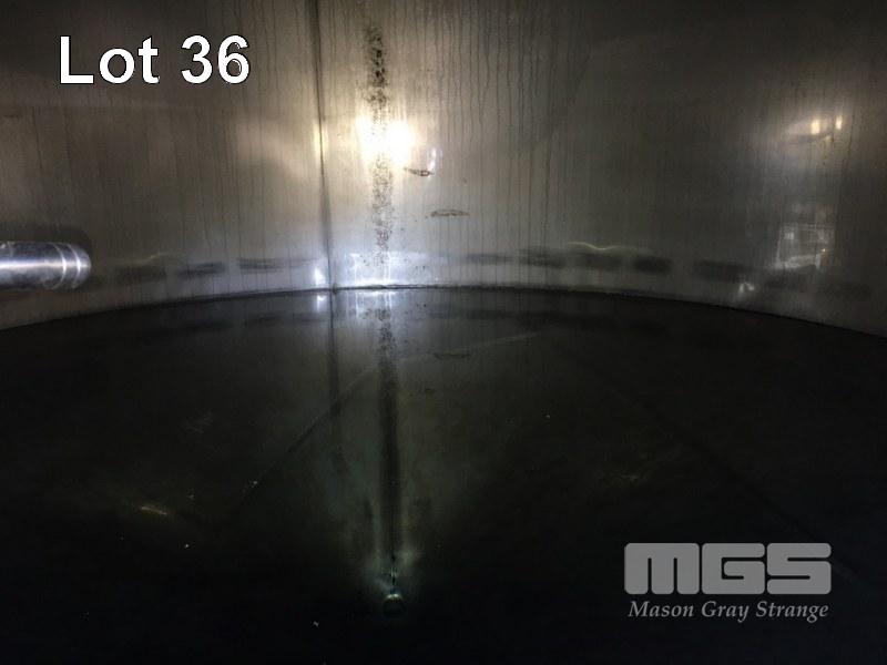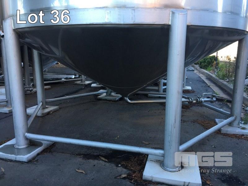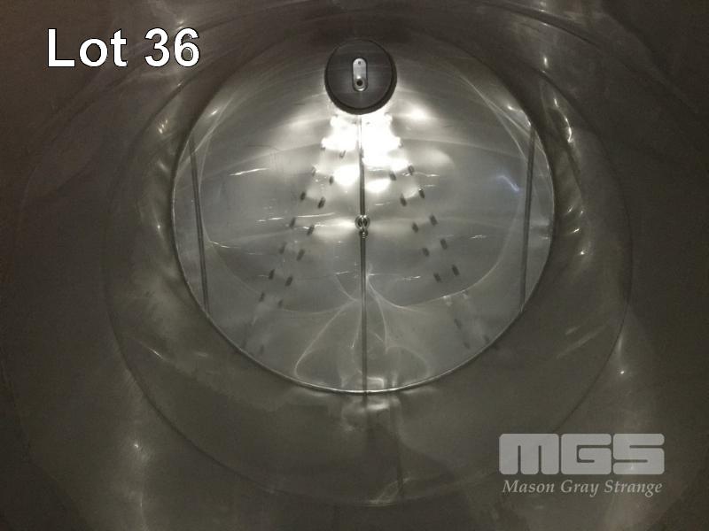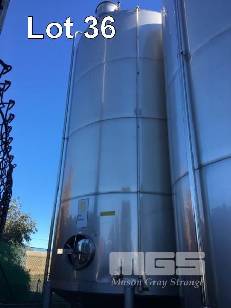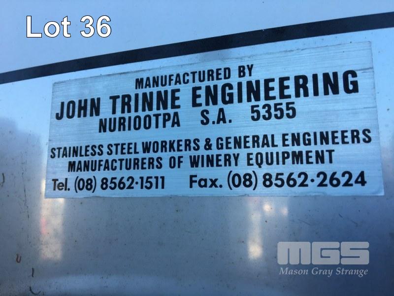 JOHN TRINNE ENGINEERING TANK, 30,000 LITRES CAP (APPROX) S/NO: 435 STAINLESS STEEL, CONE BASE FITTED WITH BOTTOM, TOP & SIDE INLET/OUTLET VALVES, SIDE MOUNT LEVEL VIEWING TUBE, SIDE INSPECTION HATCH & LIFTING LUGS