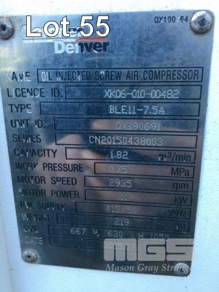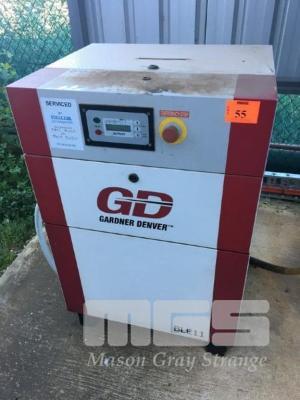 PACKAGED AIR COMPRESSOR, SCREW TYPE, GARDNER DENVER MOD: BLE11-7.5A HOURS RUNNING: 9,500 SHOWING CAP: 1.82m3/MIN WORK PRESS: 0.75MPA DOM: 2015 415V