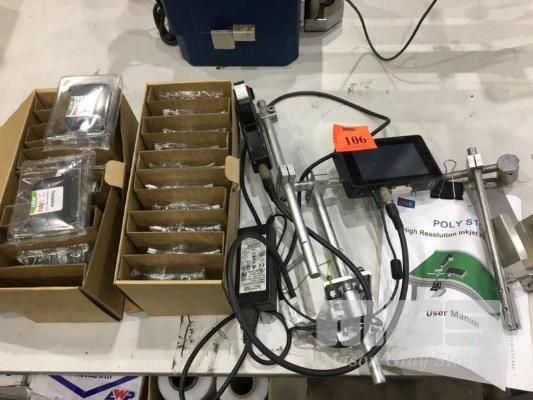 HIGH RESOLUTION INKJET PRINTER, POLYTIJ MOD: POLYS1I WITH TOUCH SCREEN CONTROLLER, PRINT HEAD MOUNTING FRAMES, PRINTER CARTRIDGES & MANUAL