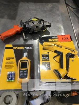 DEWALT HOT GLUE GUN & HUMIDITY & TEMP METER, (NEW), WITH PLUNGE REEL DEPTH MEASURE, RICHTER, 10m