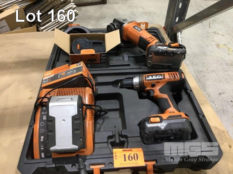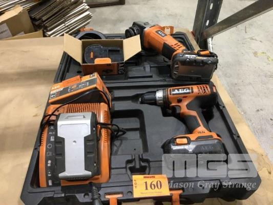 AEG CORDLESS ANGLE GRINDER & DRILL, BS18G WITH 3 x BATTERIES, CHARGER & CARRY CASE