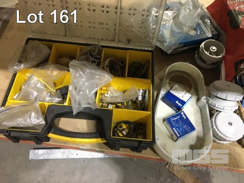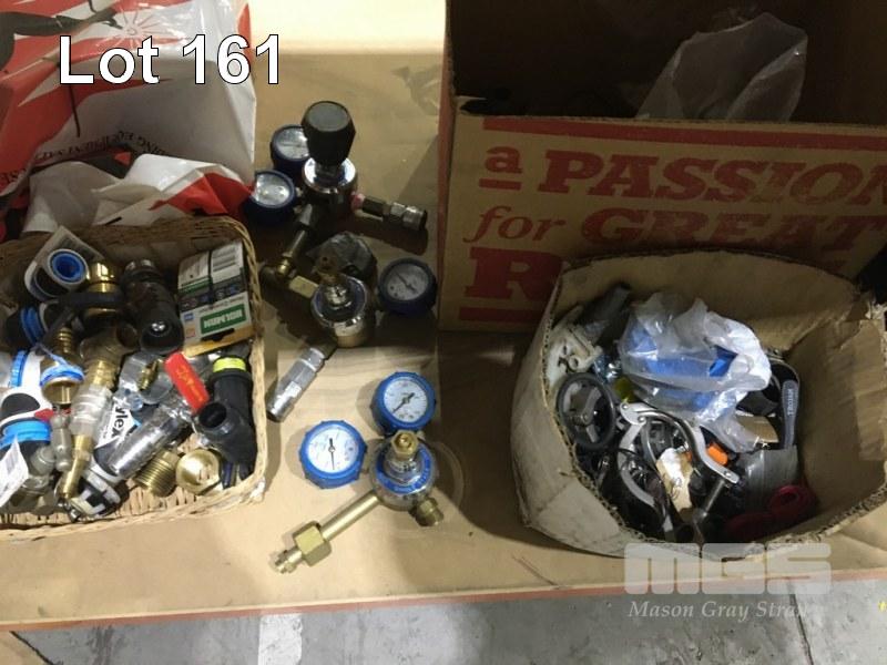 ASSORTED PIPE FITTINGS AIR/GAS ATTACHMENTS, JOINERS, SEALS, REGULATORS, STAINLESS STEEL HOSE & TANK FITTINGS, ETC, 1 x SHELF