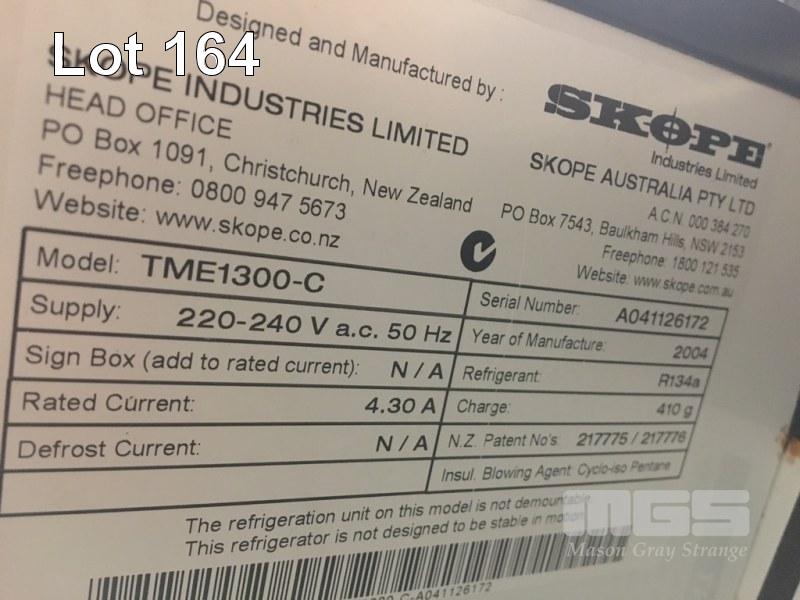 DISPLAY FRIDGE, SKOPE MOD: TME1300-C DOM: 2004 2 x GLASS DOORS MOBILE, 240V 1500 x 700 x 2200mm (H)