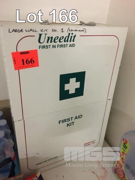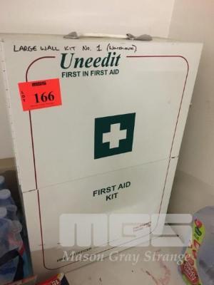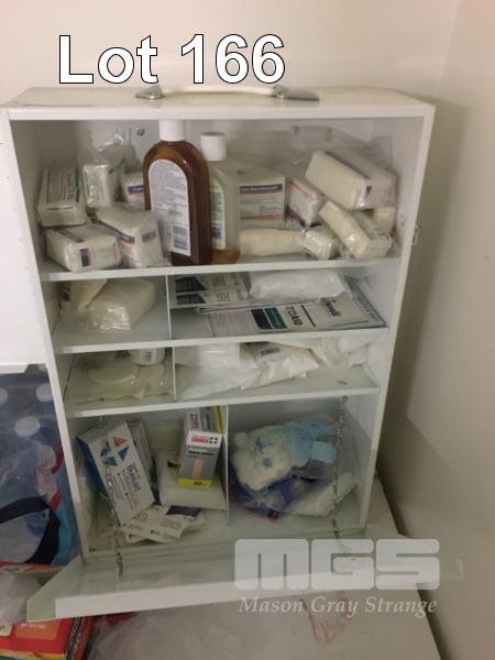 FIRST AID CABINET, WHITE STEEL & CONTENTS ASSORTED FIRST AID SUPPLIES