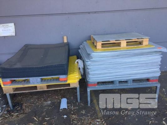 PALLET PVC BASES/LINERS WHITE, YELLOW & GREY, & 2 x GALV STEEL PALLET STANDS