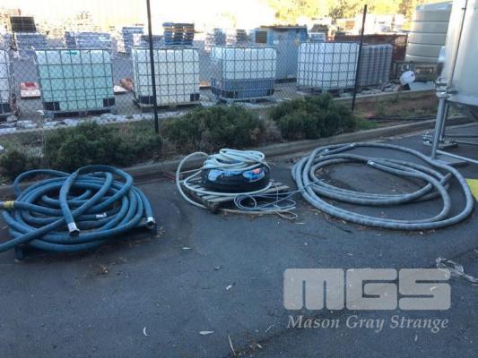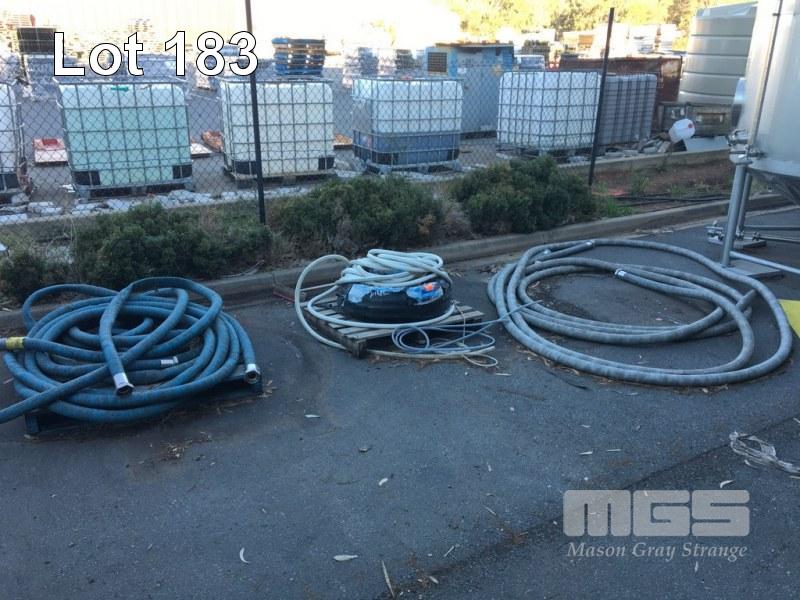 TRANSFER HOSES WITH STAINLESS STEEL FITTINGS, DIAM 65mm, ASSORTED LENGTHS & HOT WATER HOSE, 19mm, 300PSI, ETC, 2 x PALLET