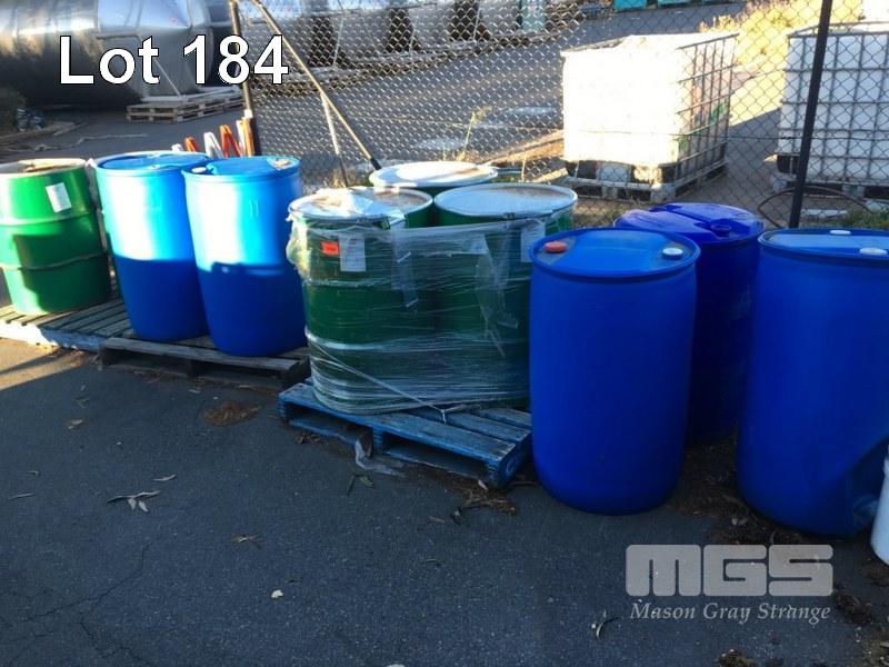 5 x BLUE POLY DRUMS, 200 LITRE & 6 x GREEN STEEL DRUMS, 200 LITRE & CONTENTS