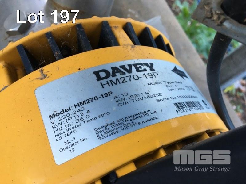 WATER PUMP, DAVEY MOD: HM270-19P HEAD 35m 240V & PRESSURE CHAMBER
