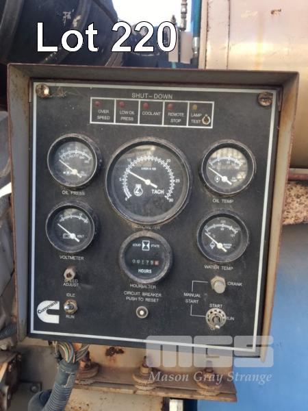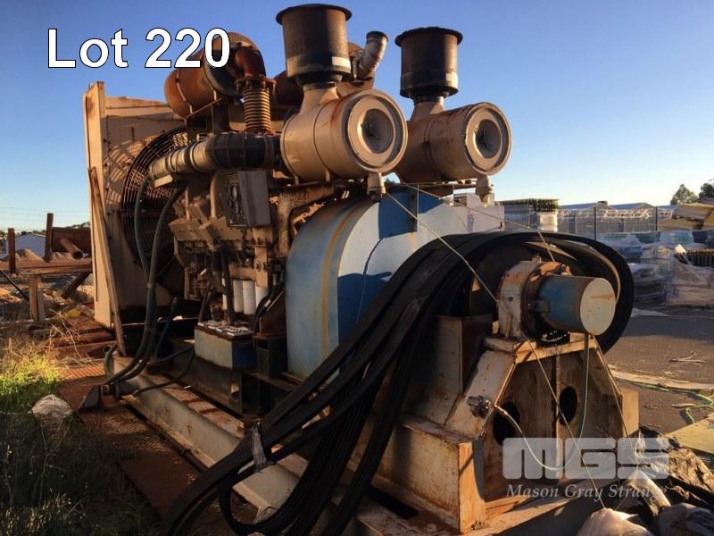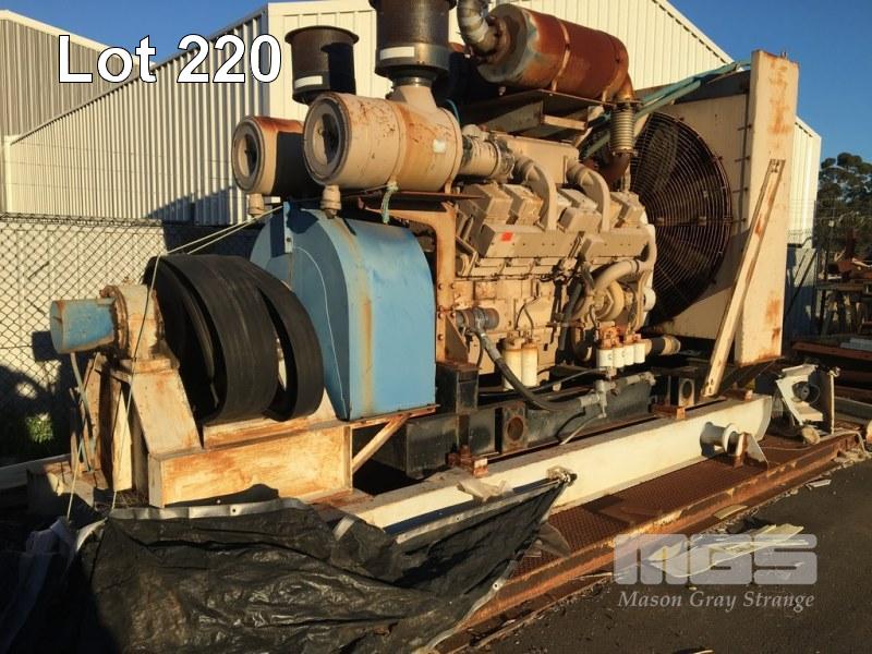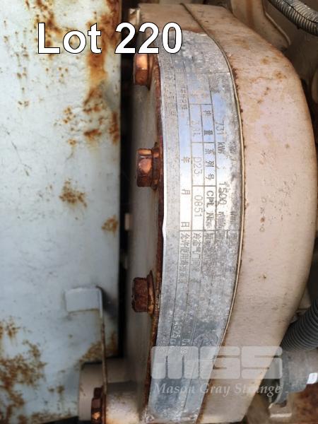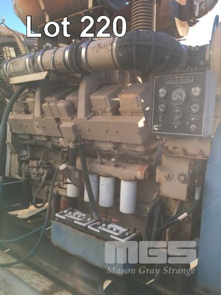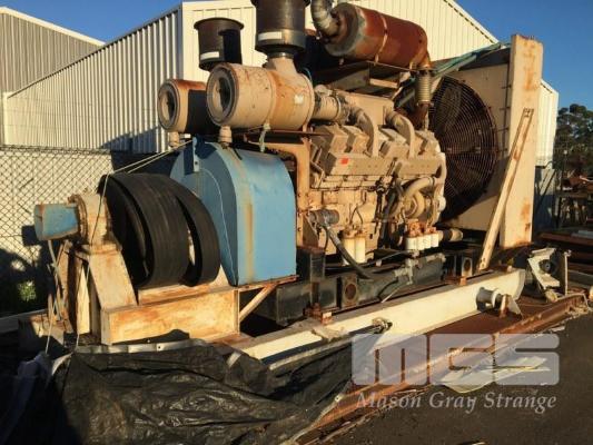 STATIONARY ENGINE, CUMMINS V12 CYLINDER DOM: 2011 TURBO DIESEL 731kw @ 1500RPM HOURS: 1,175 SHOWING SKID MOUNTED WITH DRIVE PULLEY