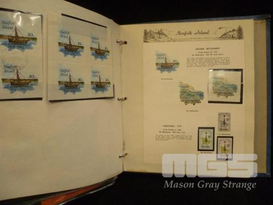 LARGE STAMP ALBUM NORFOLK, COCOS ISLAND SOME AUST ETC PLUS BLOCKS OF LADY DI STAMPS FIJI + BAHAMA