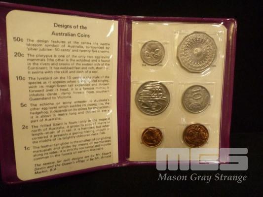 1977 SILVER JUBILEE 6 COIN UNC SET IN PURPLE WALLET