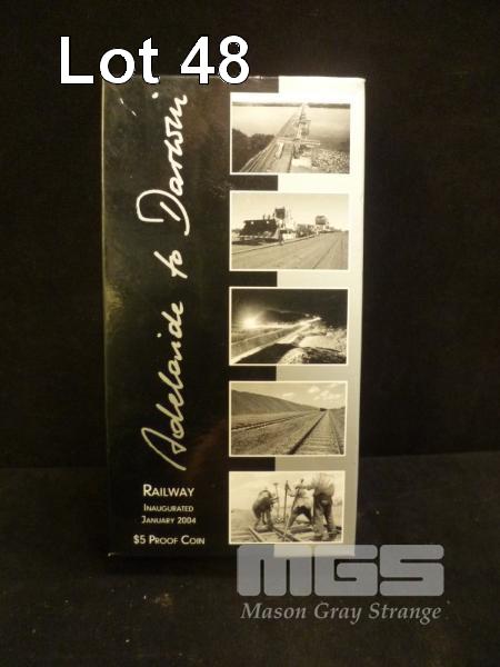 2004 PROOF 1 TROY OZ FINE SILVER " ADELAIDE TO DARWIN RAILWAY " WITH COA