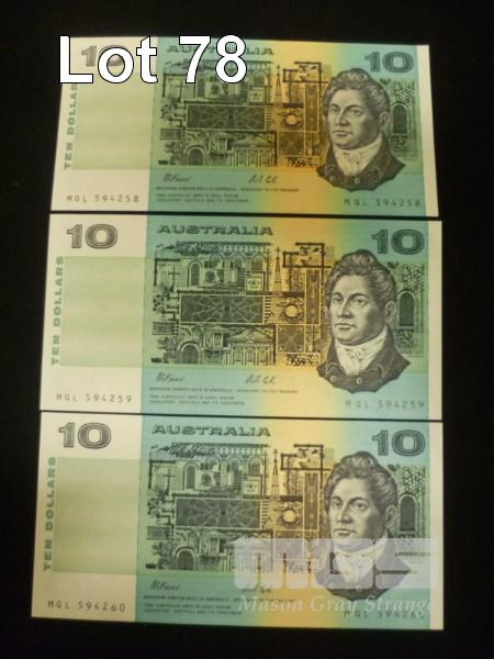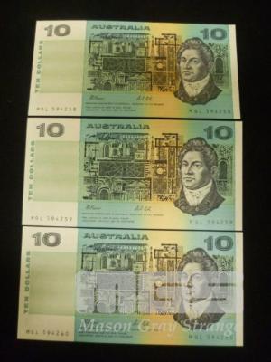 1991 3 x $10.00 NOTES CONSECUTIVE FRAZER COLE UNC