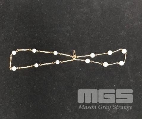 GOLD & PEARL DOUBLE LINK BRACELET, GOLD BAR LINKS WITH SINGLE PEARLS, 9ct, 7.9gm TOTAL WEIGHT