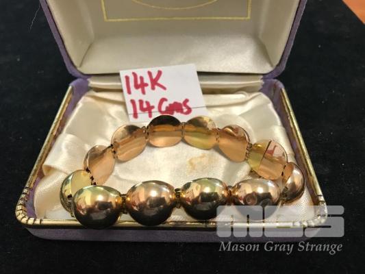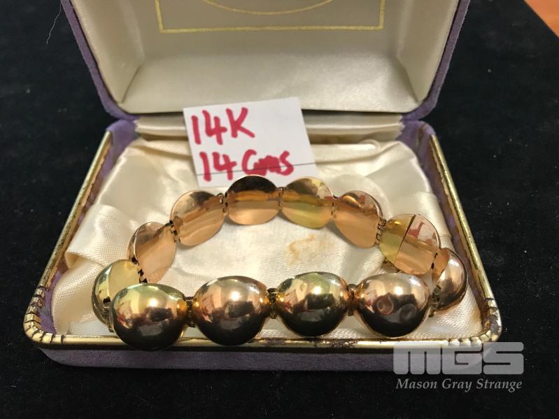 GOLD BRACELET, HALF SPHERE DESIGN, MARKED 14CT, 14.1gms