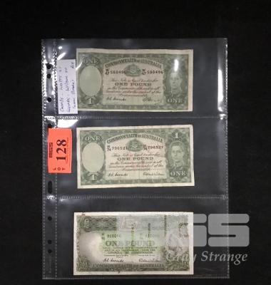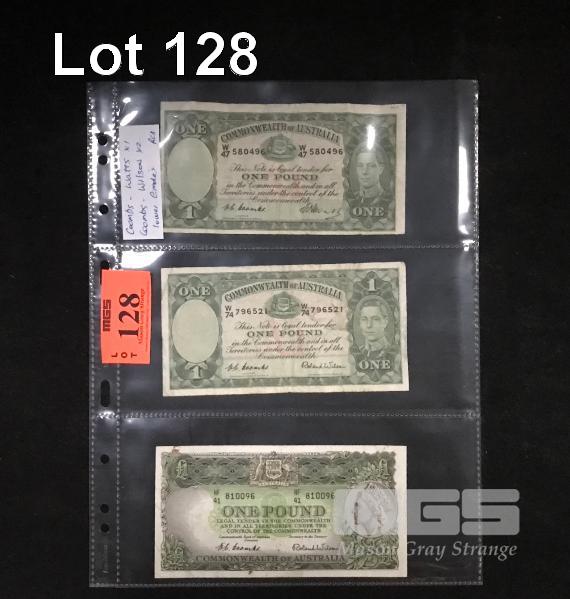3 X AUSTRALIAN ONE POUND BANKNOTES, 2 X COOMBES/WILSON, 1 X COOMBES/WATTS, W PREFIXES