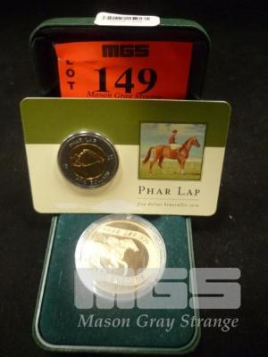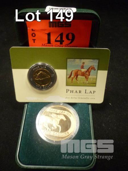 2 x BOXED ROYAL AUSTRALIAN MINT PHAR LAP $5.00 COINS