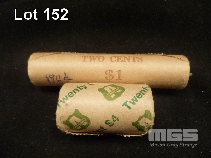 2 X ROYAL AUSTRALIAN MINT, UNCIRCULATED BANKROLLS, INC; 1984 X 2c ROLL & 1995 X 20c ROLL, 'UNITED NATIONS 50th ANNIVERSARY'