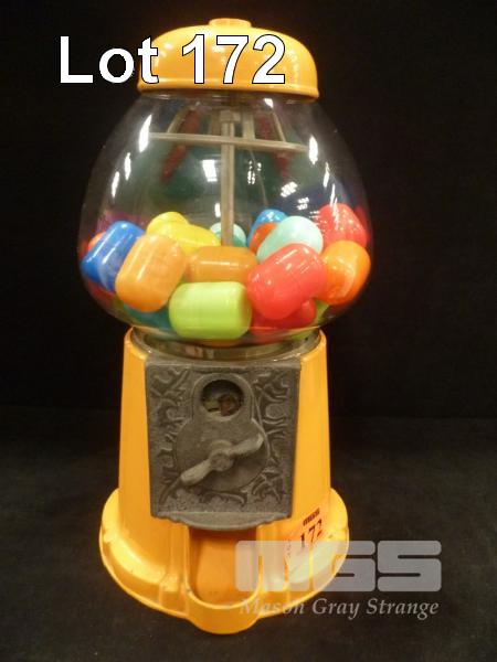 YELLOW CAST ALUMINIUM GUMBALL MACHINE, GLASS BOWL
