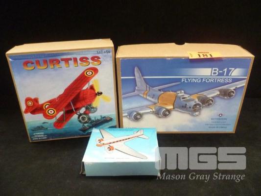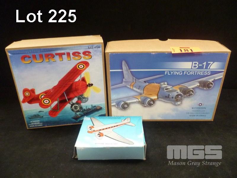 3 x WIND UP TIN PLANES INC B-17 FLYING FORTRESS, CURTISS & PASSENGER PLANE 3310
