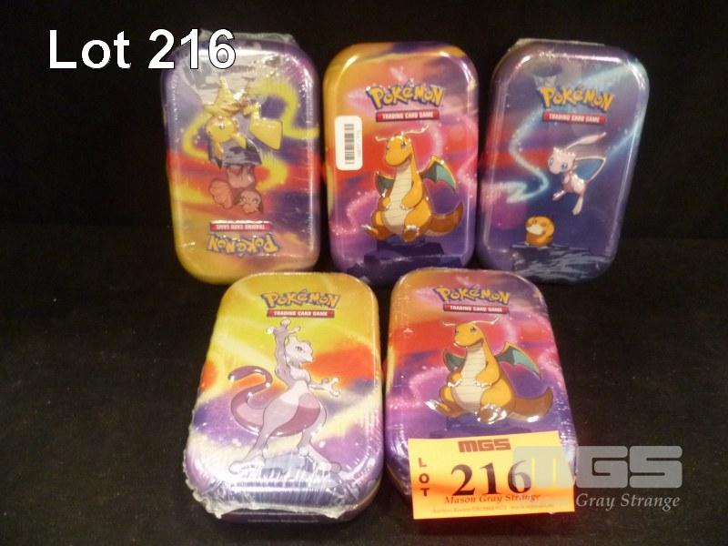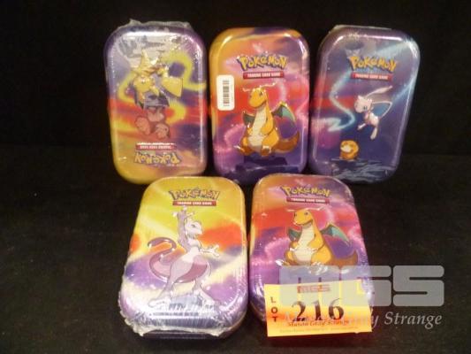 5 x POKEMON TRADING CARD GAME TIN & CONTENTS CARDS, (ALL TINS NEW OLD STOCK & SEALED)