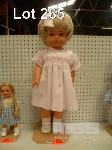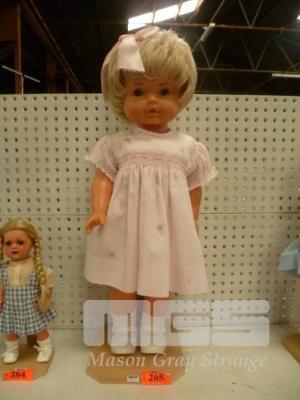 DOLL ON STAND, PINK DRESS, SHOES & HAIR RIBBON, MARKED X6170