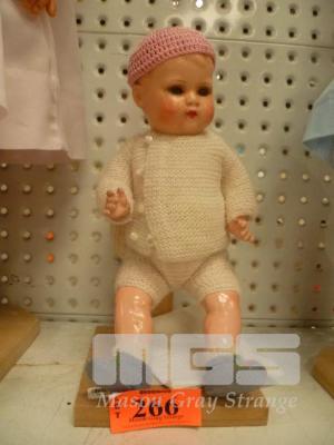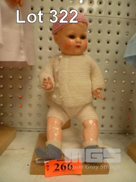 EARLY PLASTIC BABY DOLL ON STAND, (H) 25cm