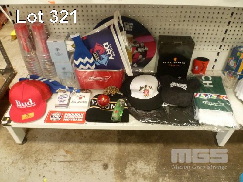 BEER & ALCOHOL MERCHANDISE PACK INC ICE BUCKET, HATS & BEANIE, STICKERS, SCARF, ETC