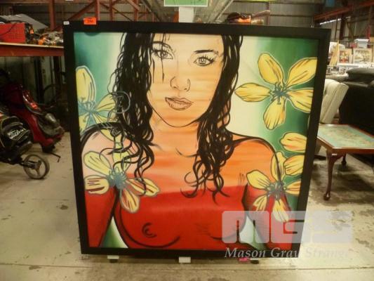 ACRYLIC ON CANVAS, REPRODUCTION PAINTING, LADY WITH FLOWERS, 129 x 129cm