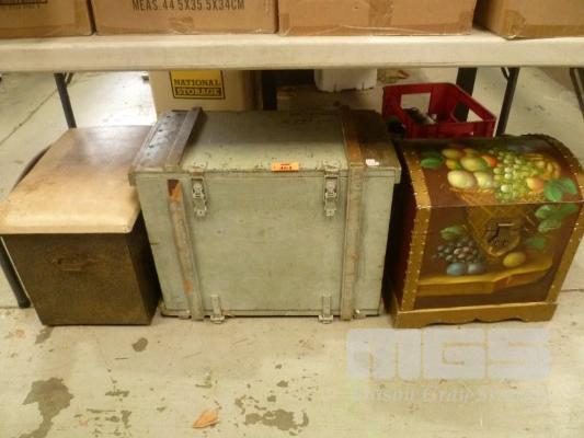 TIMBER MILITARY TRUNK, COPPER EMBOSSED TRUNK & PAINTED TRUNK