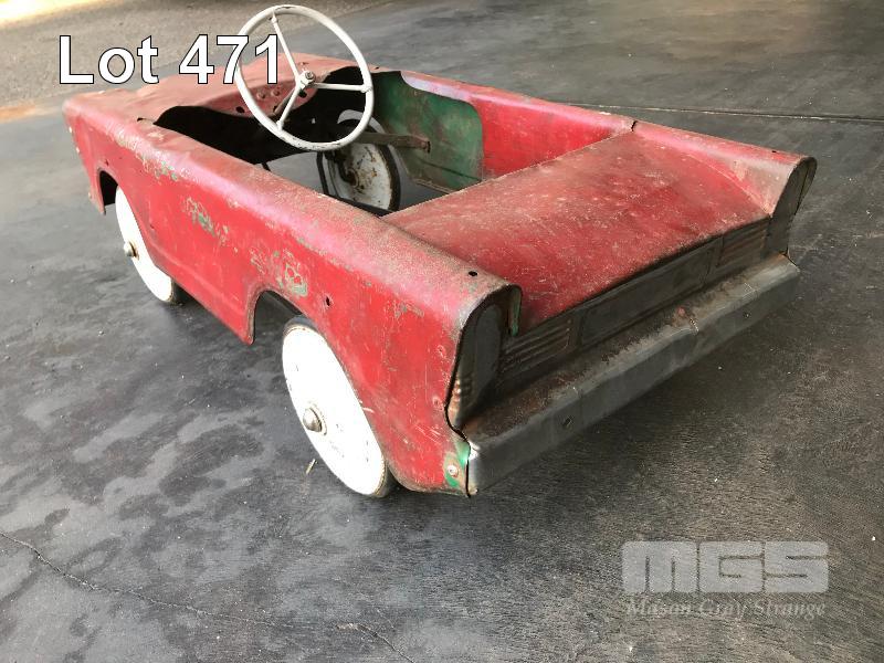 TRI-ANG PEDAL CAR, RED PAINT, CIRCA 1960'S DRIVE TRAIN CONNECTED, FAIR CONDITION FOR AGE