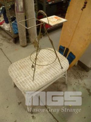 VINTAGE WHITE CANE OUTDOOR COFFEE TABLE & CIGARETTE STAND