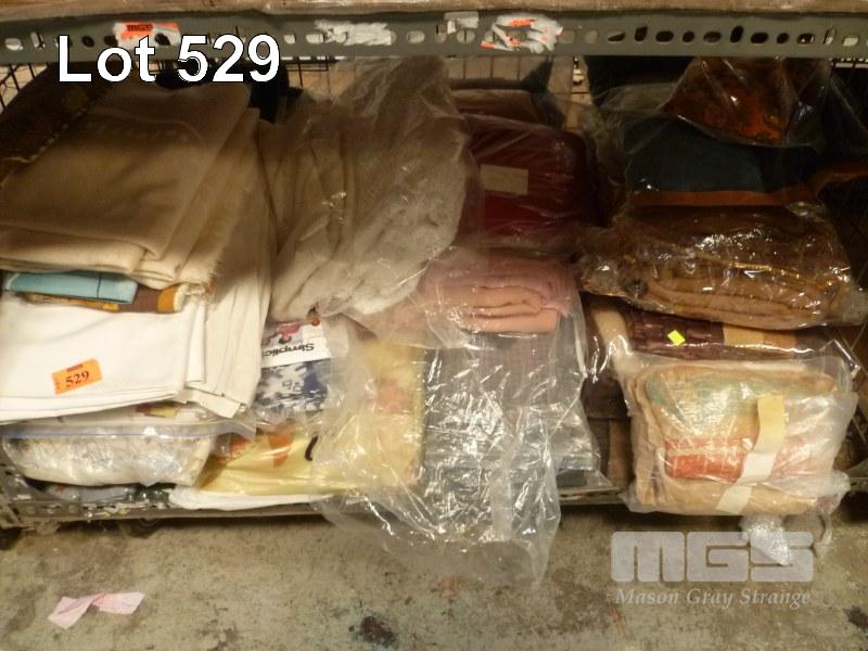 ASSORTED BEDDING, TABLE CLOTHS, ETC